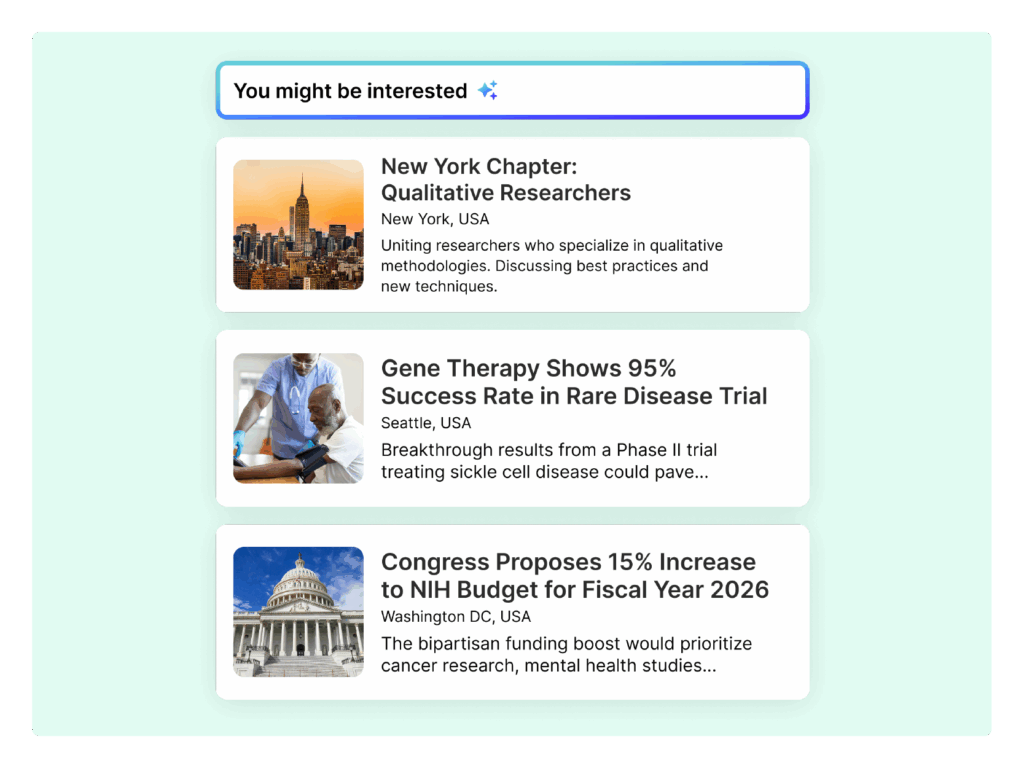 Spark valuable connections by intelligently matching members based on shared interests, goals, and expertise.